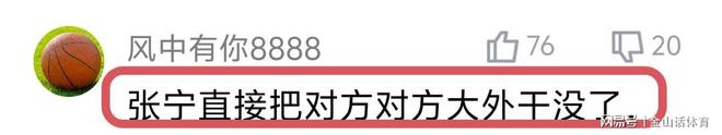 针对张宁的这次犯规,赛后许多球迷也是纷纷对此发表看法。“张宁大功臣,每次都是他。”;“打韩国就该上张宁去防干李贤重,不就稳赢了”“张宁直接把对方对方大外干没了,牛逼!”。不过也有网友认为,张宁并非恶意犯规,浙江队输球的真正原因,是主教练丁伟“丁伟已经被事实反复证明就不适合做教练,偏偏就有犟种不信邪!上帝要毁灭一支球队就会给一个丁伟。”……